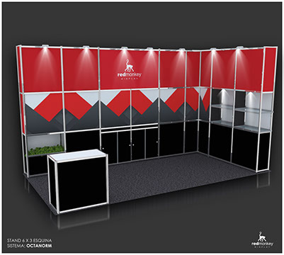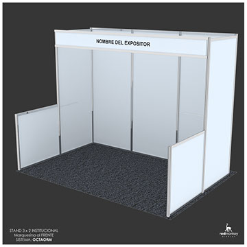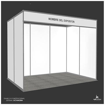Montamos stands institucionales en medida standard para exposiciones (3m x 3m); también contamos con stands en medidas especiales.